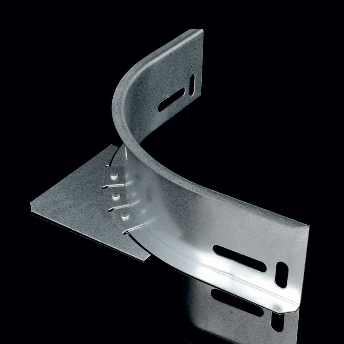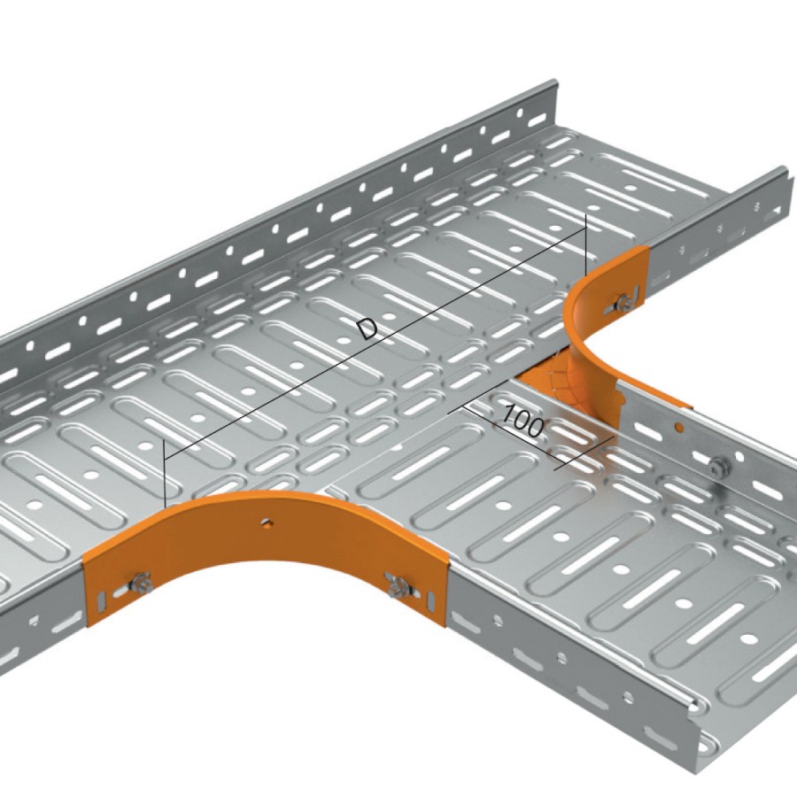 Díl slouží k dodatečnému vytvoření odbočení z kabelové trasy u kabelových žlabů s výškou bočnice 50 mm, provedení žárový zinek