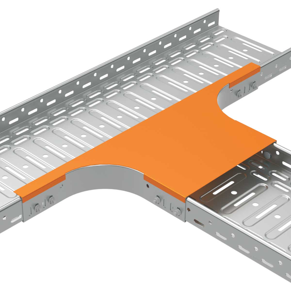 Víko pro zakrytí odbočného dílu pro kabelové trasy šířky 200 mm, vhodné pro kabelové trasy s povrchovou úpravou sendzimir