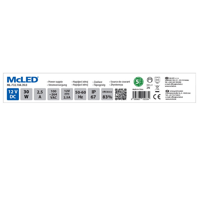 Napájecí zdroj 30W, DC12V/2,5A, IP67, hliníkové provedení