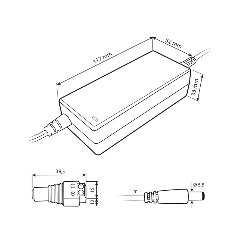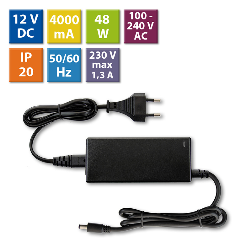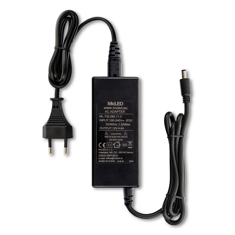Napájecí adaptér 48W, DC12V/4A, IP20, černý plast, s vidlicí