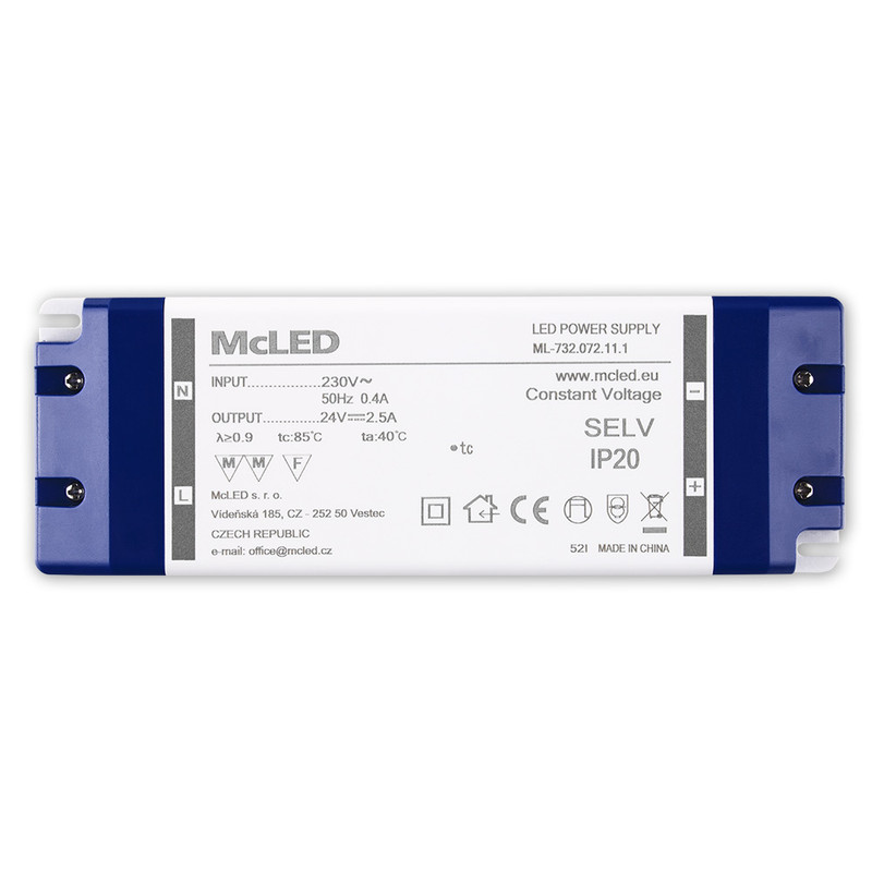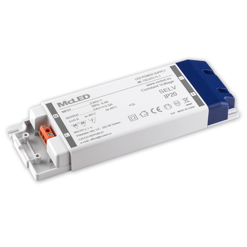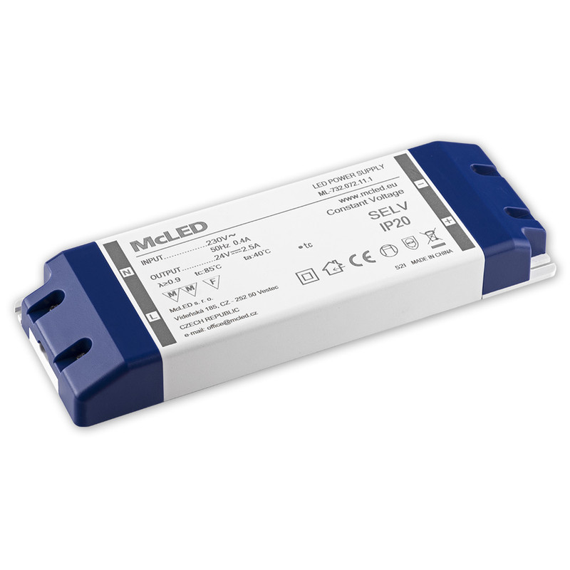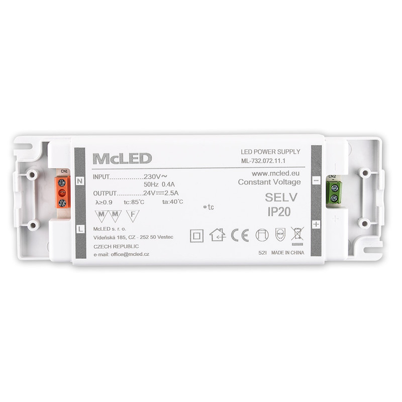 Napájecí zdroj 60W, DC24V/2,5A, IP20, plastové provedení se svorkovnicí
