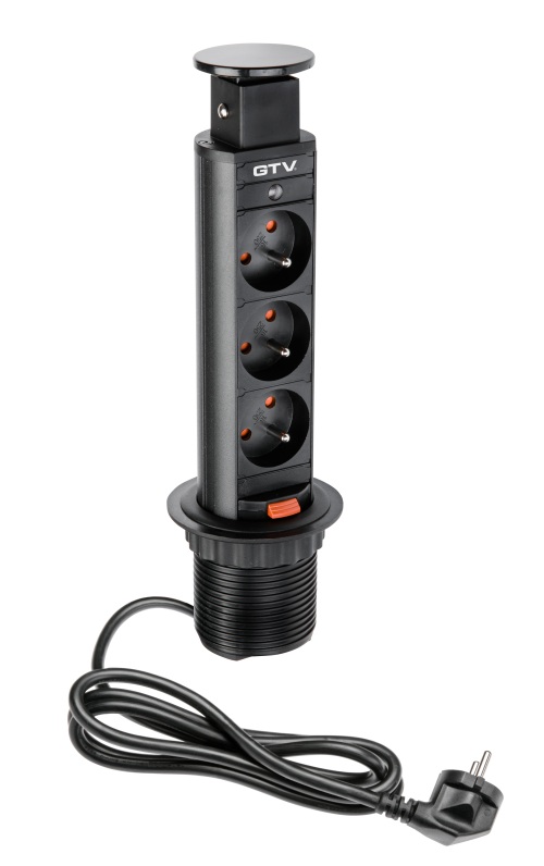 Výsuvná zásuvka v provedení černá se třemi zásuvkami je vhodná do kuchyní i do kanceláří.