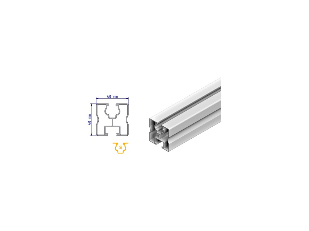 Nosný profil modulu Schletter Solo (40 x 40 mm) s délkou profilu 4400 mm, hliník stříbrný, nahoře zacvakávací matice M8, dole šroubovací kanál M10, vhodný pro střešní háky Rapid2+.
