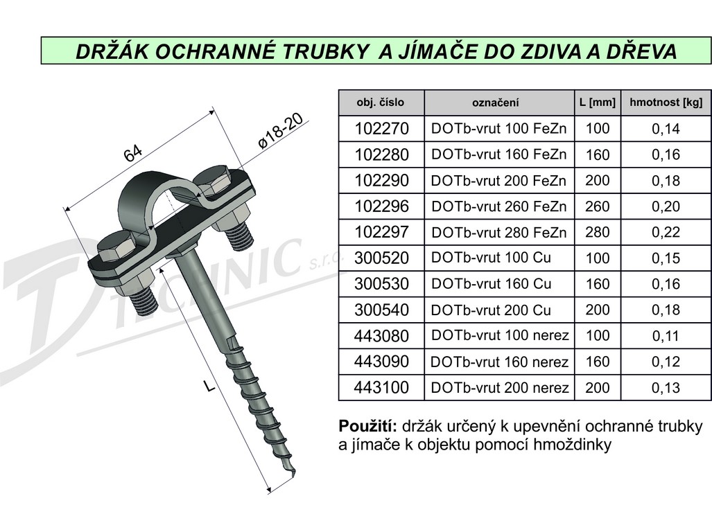 Držák DOTb-vrut 200 FeZn ochránné trubky