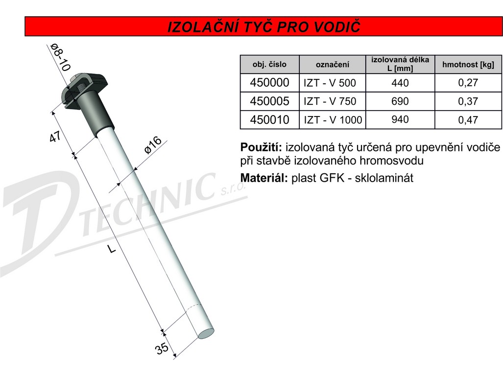 Tyč IZT-V 500 izolační