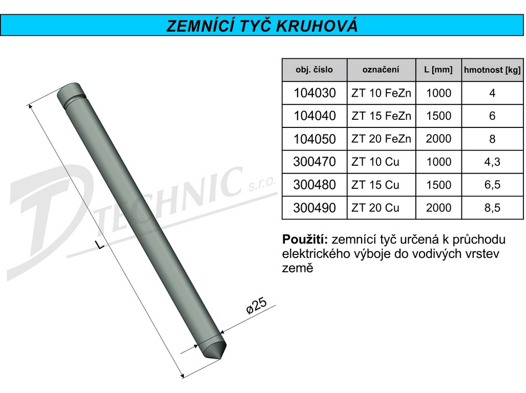 Tyč ZT 1.5 zemnící plné | Bi Esse Cz s.r.o.