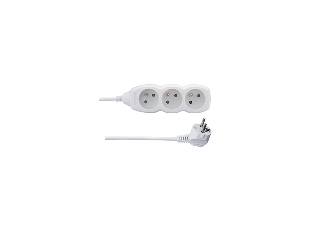 Bílý prodlužovací přívod, 3 zásuvka s délkou 1,5 m a průřezem vodiče 1 mm2. Vhodný pro maximální zátěž 10 A max. Prodlužovací přívod 1,5 m na 230 V~ slouží k prodloužení elektrické energie tam, kam pevná zásuvka nedosáhne.