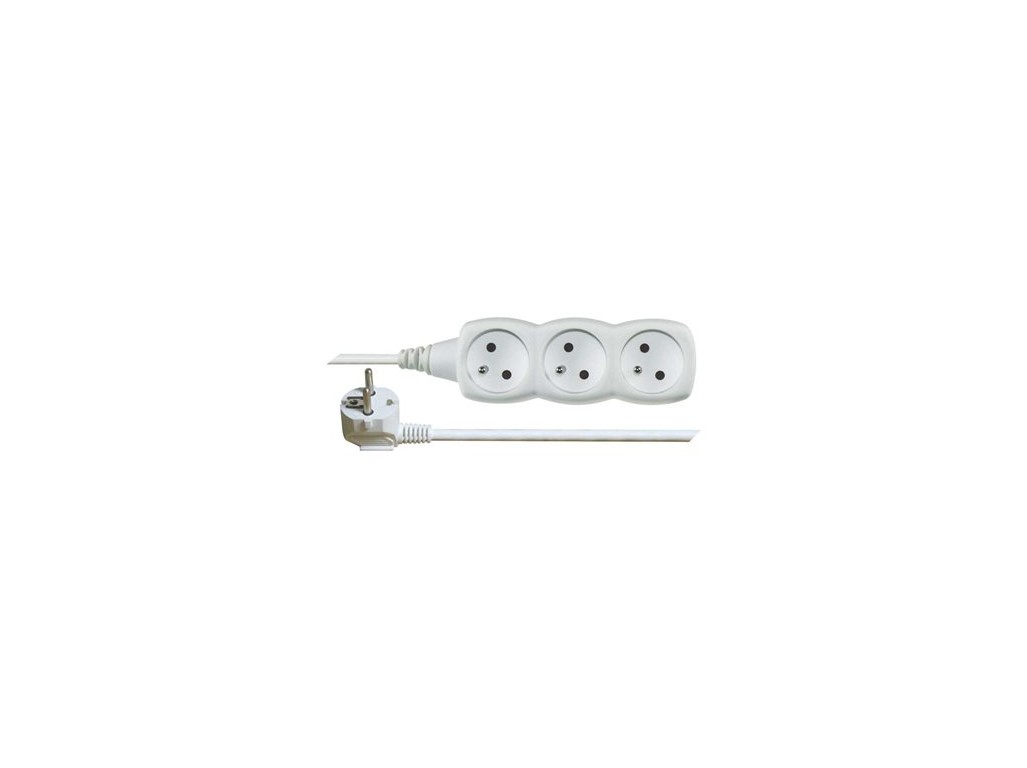 Bílý prodlužovací přívod, 3 zásuvka s délkou 2 m a průřezem vodiče 1 mm2. Vhodný pro maximální zátěž 10 A max. Prodlužovací přívod 2 m na 230 V~ slouží k prodloužení elektrické energie tam, kam pevná zásuvka nedosáhne.
