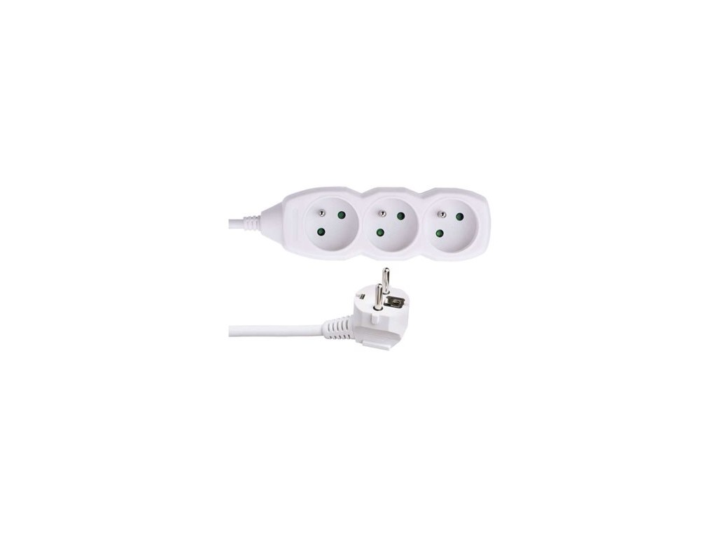 Bílý prodlužovací přívod, 3 zásuvka s délkou 3 m a průřezem vodiče 1 mm2. Vhodný pro maximální zátěž 10 A max. Prodlužovací přívod 3 m na 230 V~ slouží k prodloužení elektrické energie tam, kam pevná zásuvka nedosáhne.