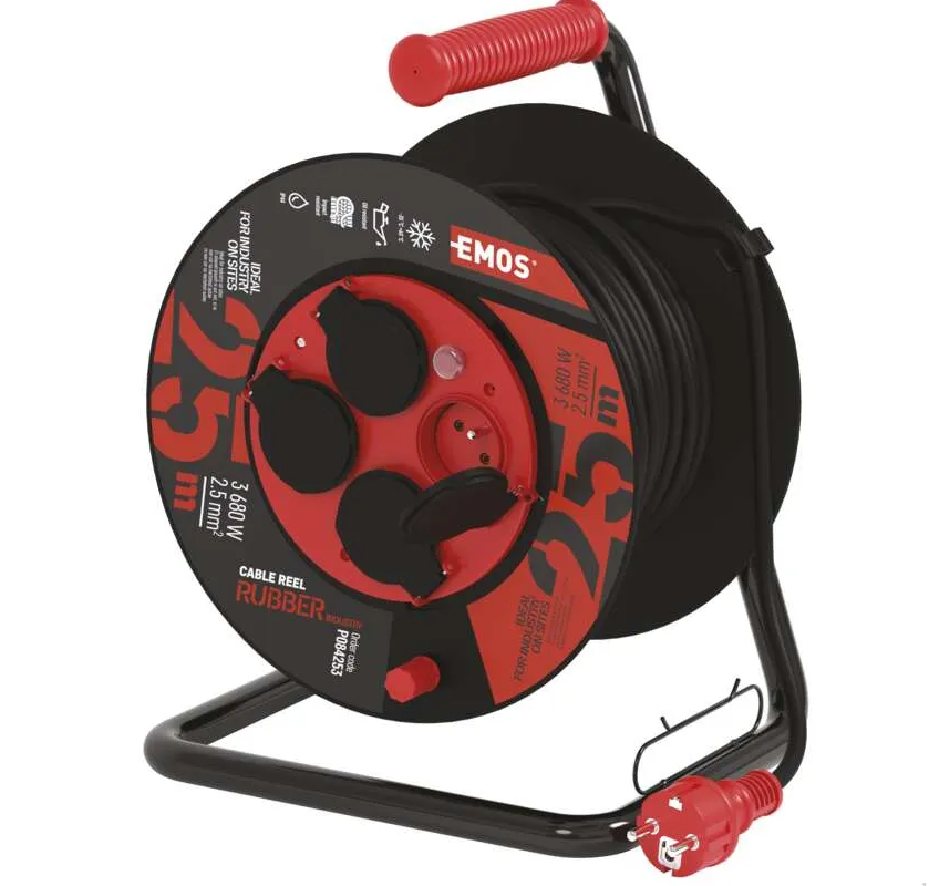 Kvalitní gumový naviják prodlužovacího přívodu. Je ideální pro prodloužení napájecí sítě 230V~. Jeho výhodou je pohodlná manipulace díky bubnu.