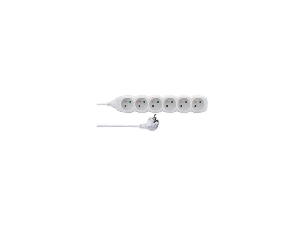 Bílý prodlužovací přívod, 6 zásuvka s délkou 2 m a průřezem vodiče 1 mm2. Vhodný pro maximální zátěž 10 A max. Prodlužovací přívod 2 m na 230 V~ slouží k prodloužení elektrické energie tam, kam pevná zásuvka nedosáhne.
