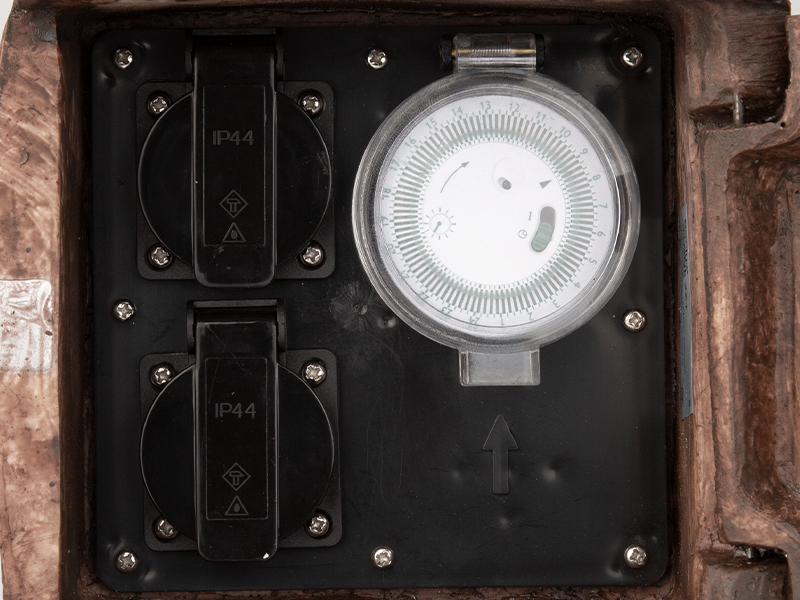 Zahradní doplněk v moderním designu se dvěma zásuvkami a jedním časovačem #stone #zimnivychytavky #kabelyvsuchu