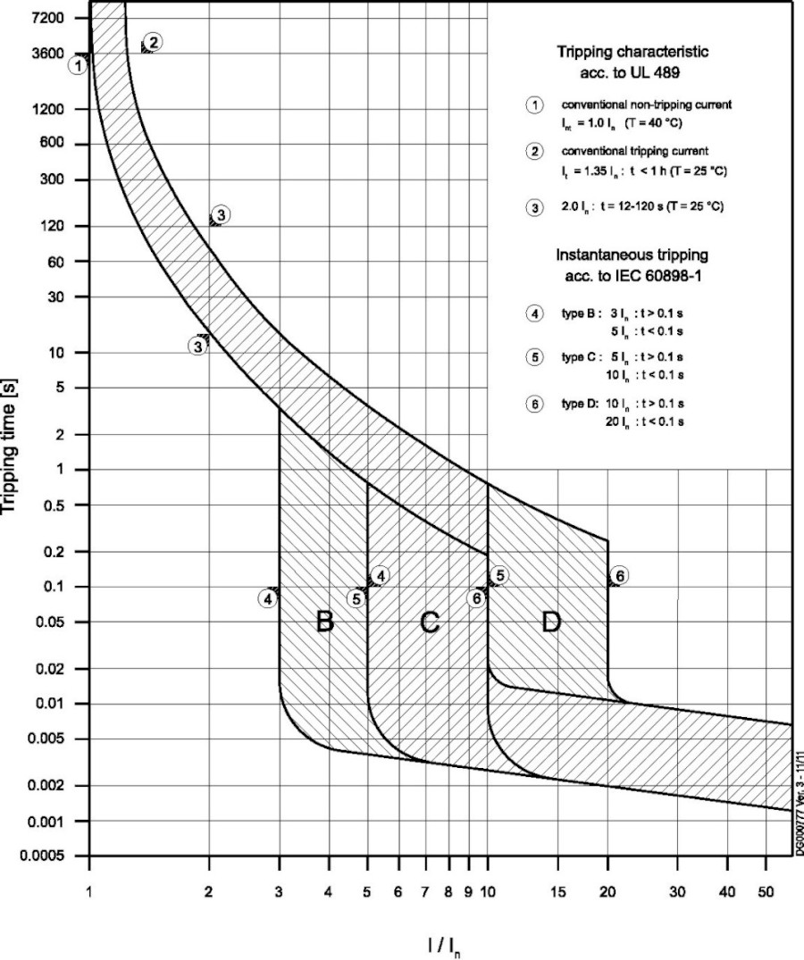 Jistič FAZ (norma UL), charakteristiky: C, 1-pólový, In=10 A, Icn=15 kA (IEC 60947-2)