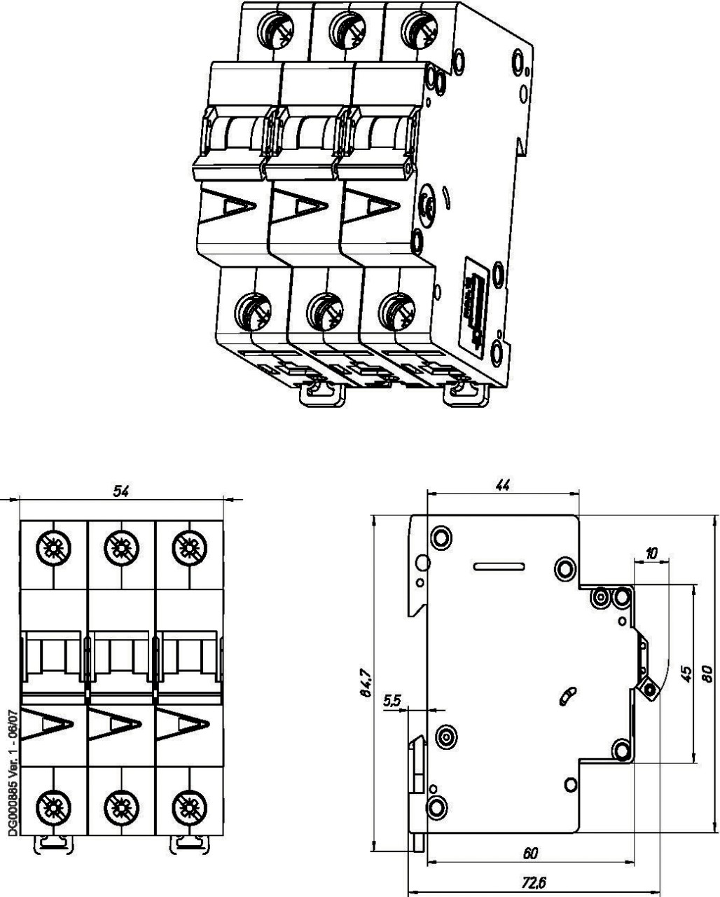 Jistič vedení, 2 A, 3p, charakteristiky: D