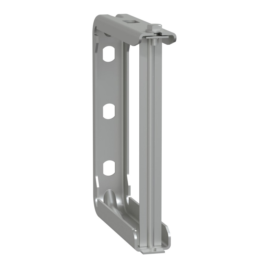Canalis fixing bracket for KSB. Mounting by suspending on threaded rod and wall mounting with 135 kg maximum load. Sold in lots of 10 units. It is compliant with both IEC 60439-2 and IEC 61439-6. It is also compliant with Green Premium (RoHS/REACH).