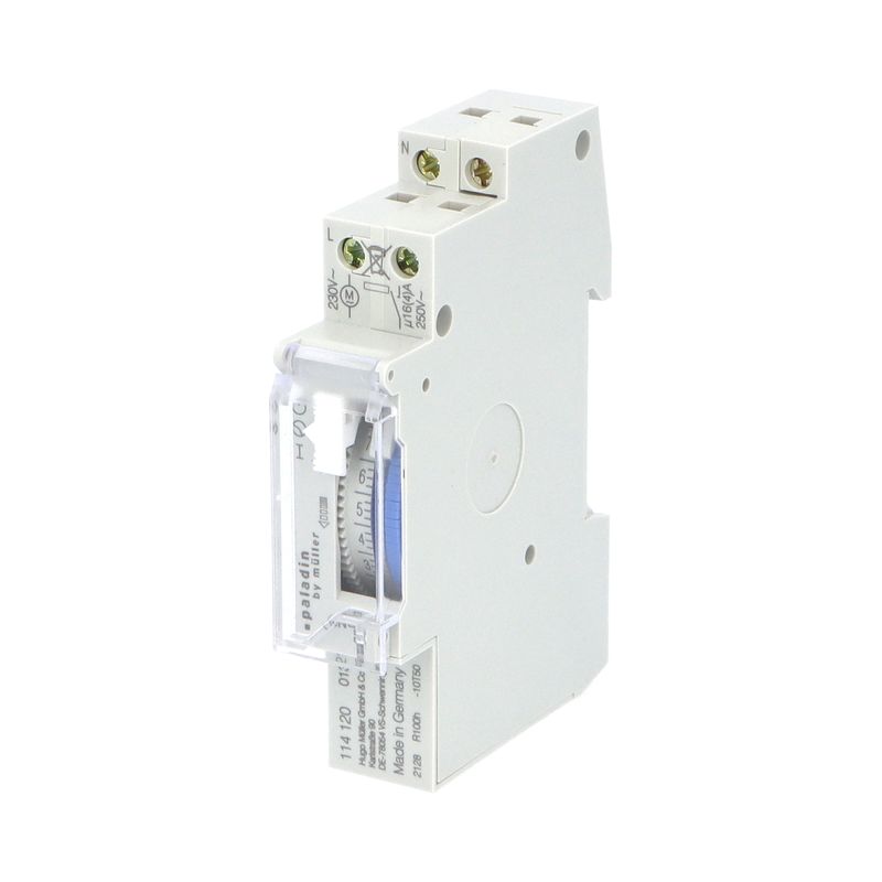 Hodiny spínací PALADIN 114120, analog., denní, 1mod., se zálohou, šedé, na DIN lištu