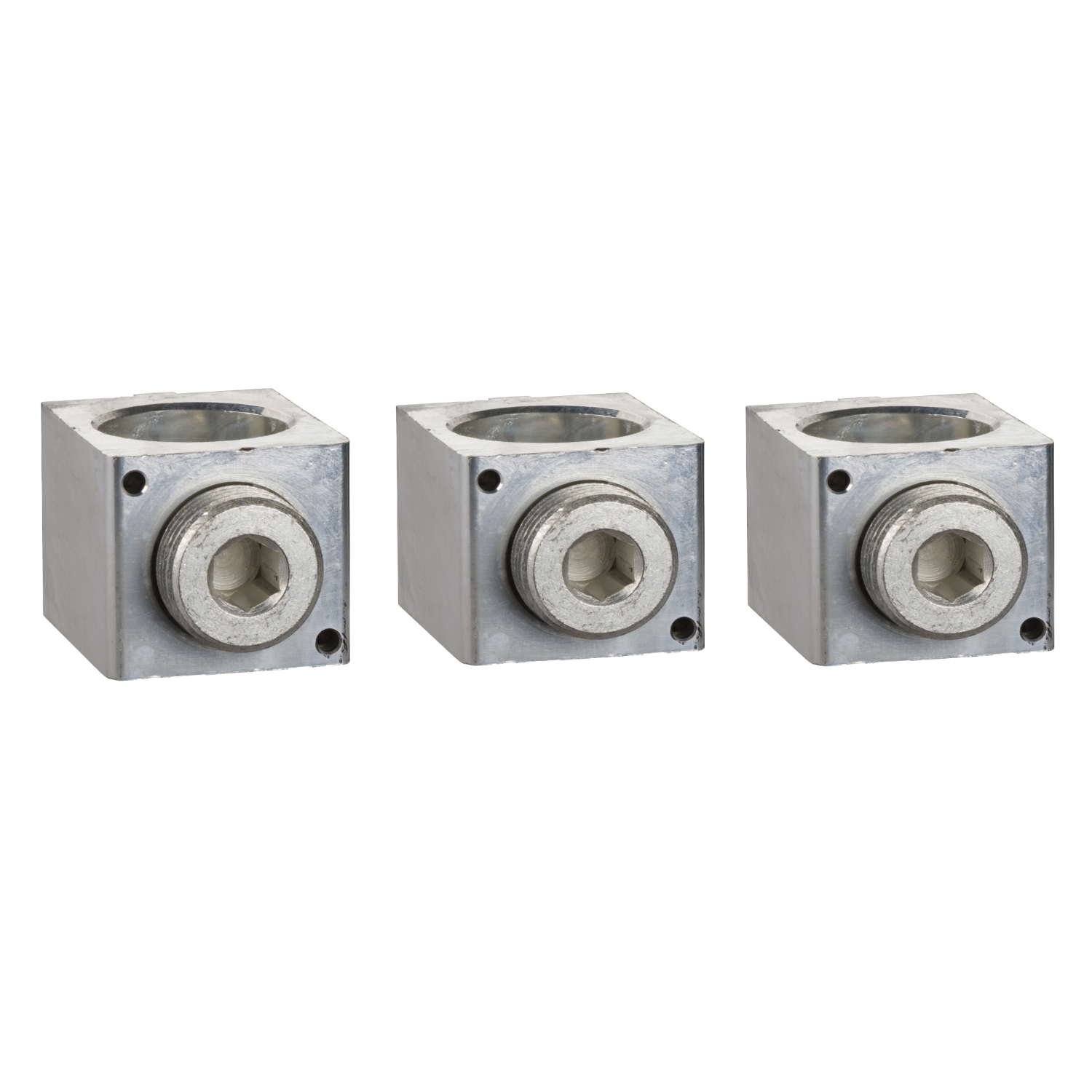 Tyto příslušenství jsou hliníkové konektory holého kabelu pro Compact NSX 400/630 a EasyPact CVS 400/630. Tyto konektory mohou přijímat 1 měděný nebo aluminium kabel od 35mm² do 300mm². Konektory se přímo nasazují na svorky zařízení nebo jsou připevněny sponami s koncovkami. Jmenovitý proud je až 630 A. Prodávají se v sadě 3 dílů.