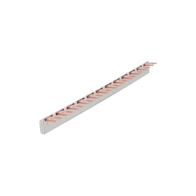 Propojovací fázové lišty umožňují propojení modulových přístrojů (např. jističů, chráničů, modulových vypínačů apod.) jednoduchým a profesionálním způsobem. Standardní délky lišt jsou 210 mm (propojení 12ti modulů) nebo 1 metr. Tyto standardní rozměry lze libovolně krátit (konce lišt doporučujeme osadit plastovými koncovkami). Ve srovnání s klasickou instalací pomocí kabelových mostů nabízí propojovací lišty následující výhody:
