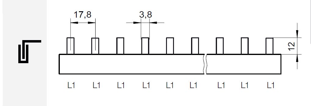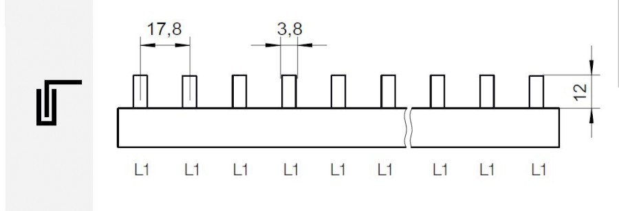 Prop. lišta S-1L-1000/10 ISO, kolík (jazýček), 1pól., 63A, rozteč 17,8mm