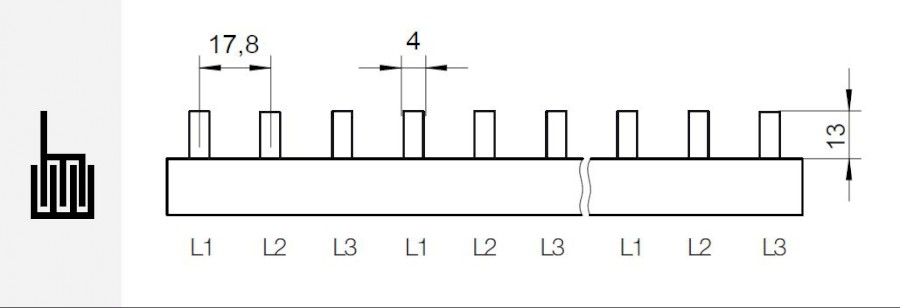 Prop. lišta S-3L-1000/16, kolík (jazýček), 3pól., 80A, rozteč 17,8mm
