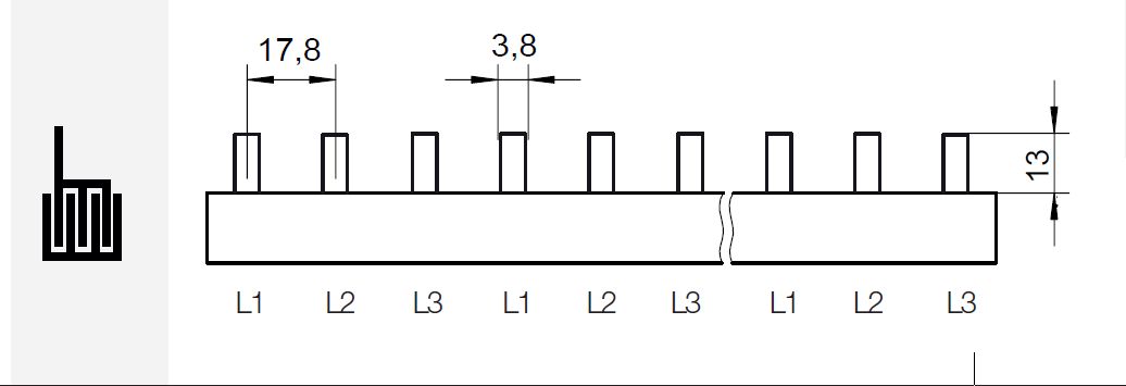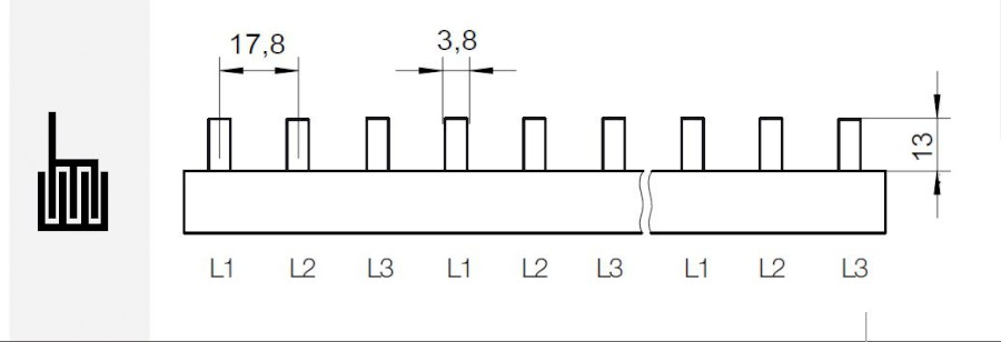 Prop. lišta S-3L-210/10, kolík (jazýček), 3pól., 63A, rozteč 17,8mm