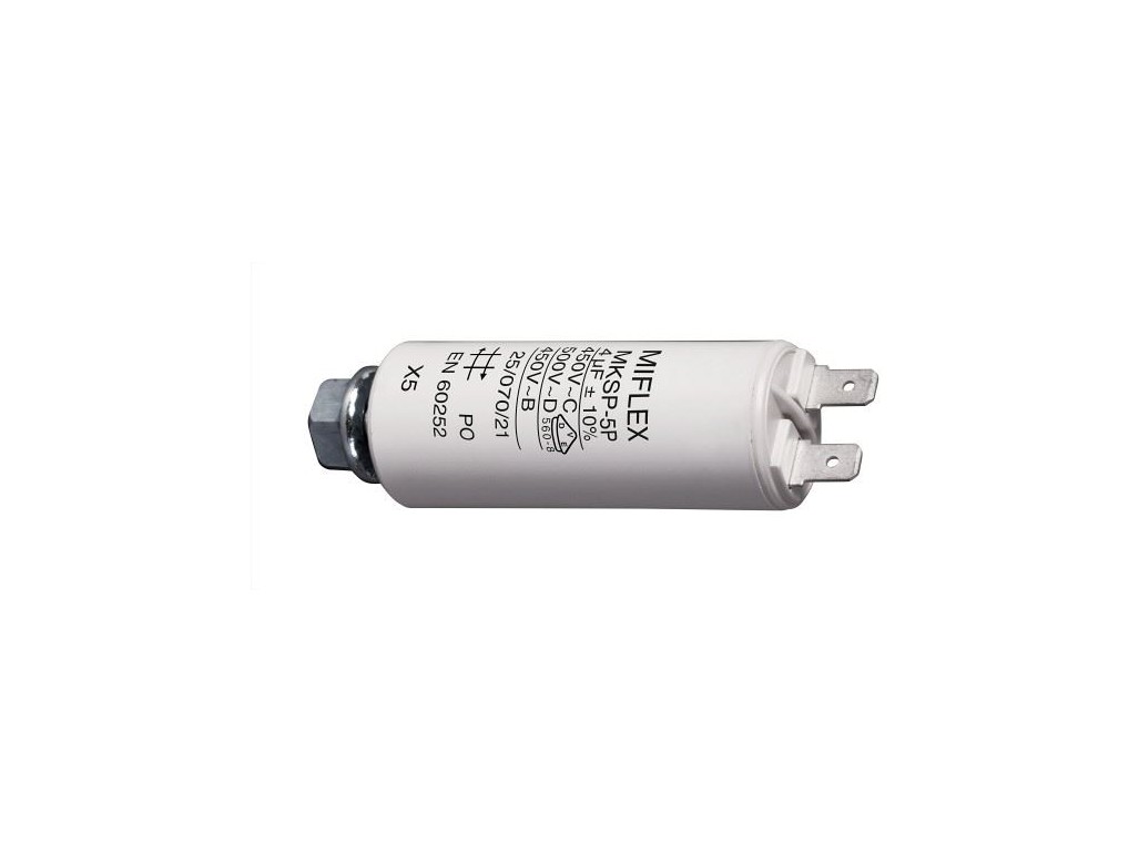 | Popis | 4uF/450V motorový kondenzátor MKSP-5P s fastony, 25x58mm |