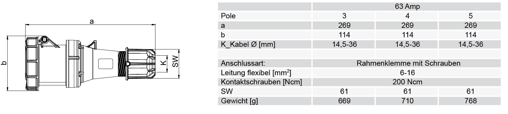 Zásuvka 235-6 5x63A IP67 spojovací