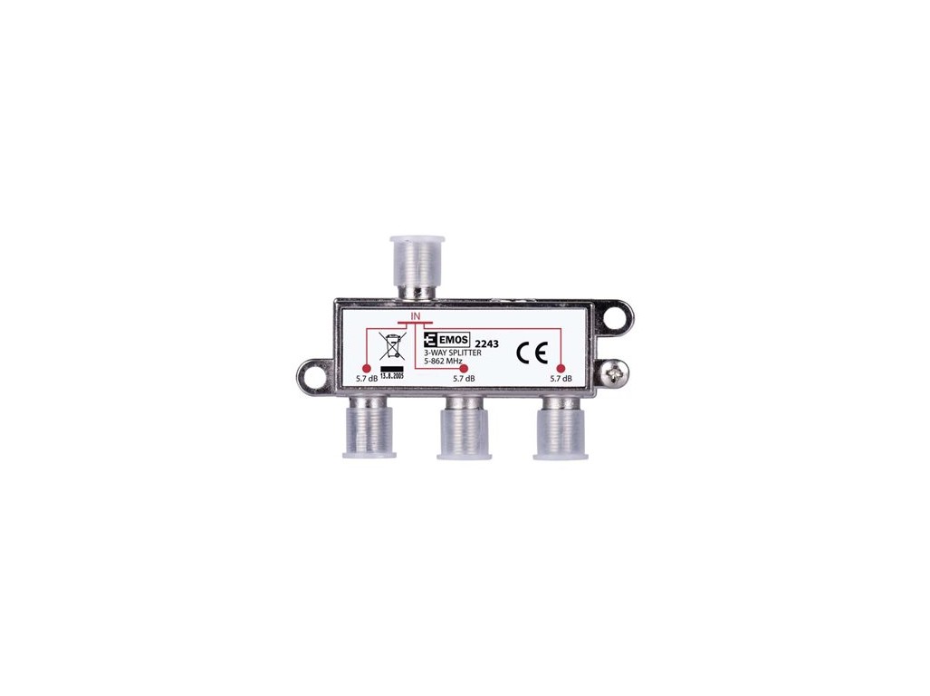 Trojnásobný feritový rozbočovač EU 2243. Rozbočovač se využije v případech kdy např. chcete zapojit dva televizory do jedné účastnické zásuvky.