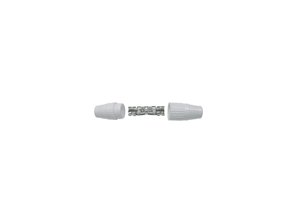 IEC spojka určená k nadstavení koaxiálního kabelu a má bílou barvu. Spojka se prodává po 10 ks.