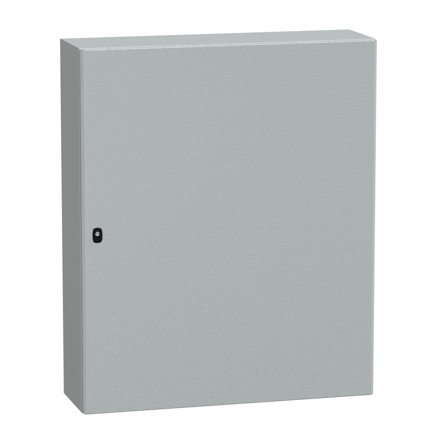 Spacial S3D nástěnná mont. ocelová skříň s plnými dveřmi. Jedno tělo, montážní deska je součástí balení. 3bodový uzamykací systém s rukojetí a 3 mm dvojitou tyčí se zámkem. Práškový povrch z oceli, epoxidový polyester. Ochranné folie pro IK10, 66/35. 2 desky kabelových průchodek jsou součástí dodávky, standardní.