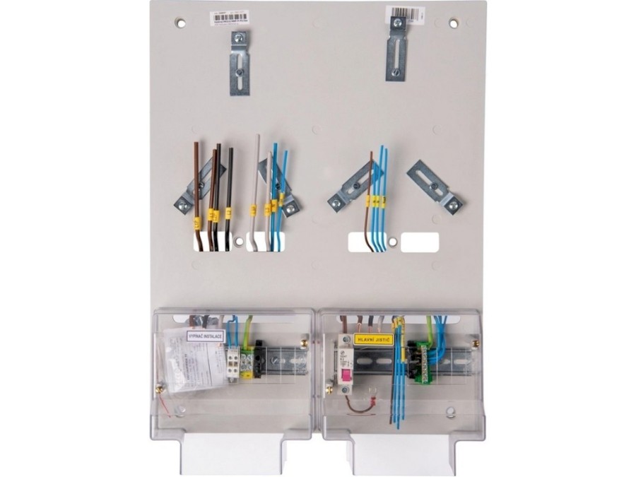 Disponuje plombovatelným krytem jističů, jističem 2 A charakteristika B a ovládacím relé.