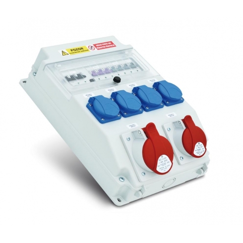 Zásuvková rozvodnice 1x3253+1x1653+4x230V, jištěná-všechny zásuvky, char."C", s chráničem, IP54