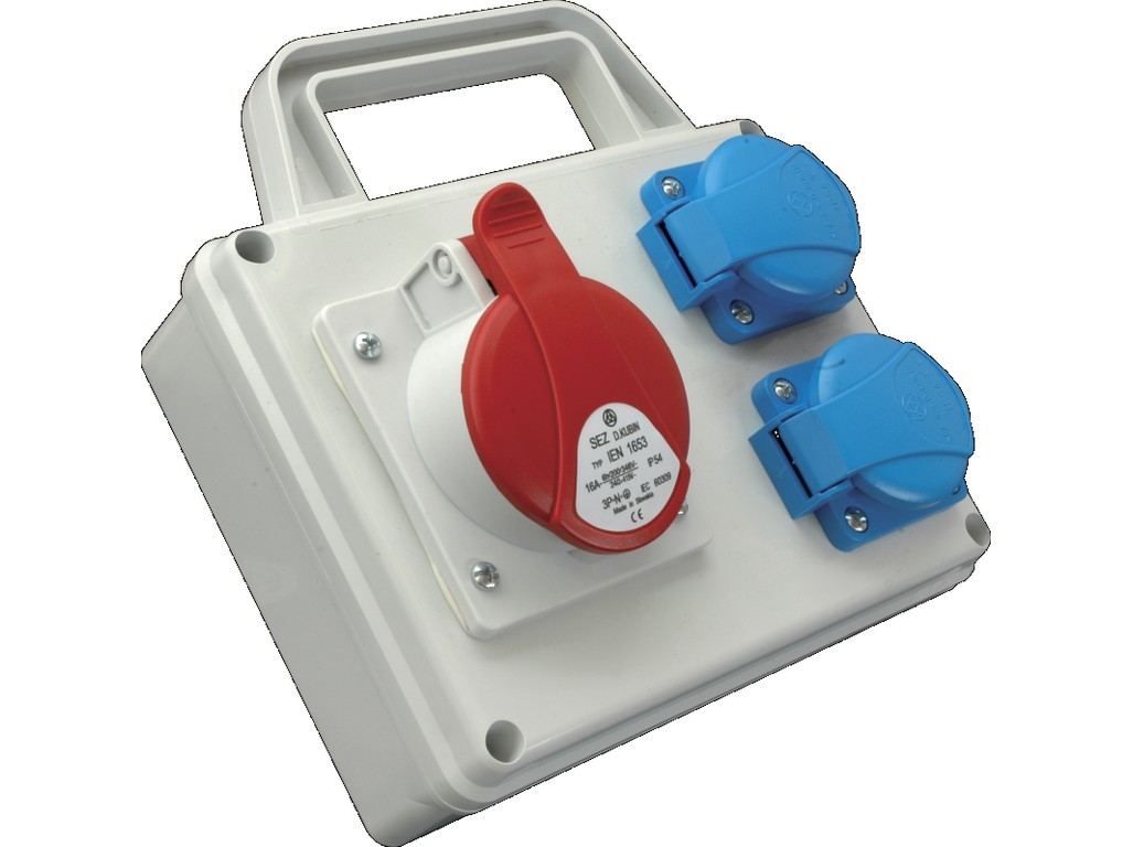 Skříň ROSP1631D 1x16A 5pól, 2x230V IP54 s držadlem Praktik SEZ | Bi Esse Cz s.r.o.