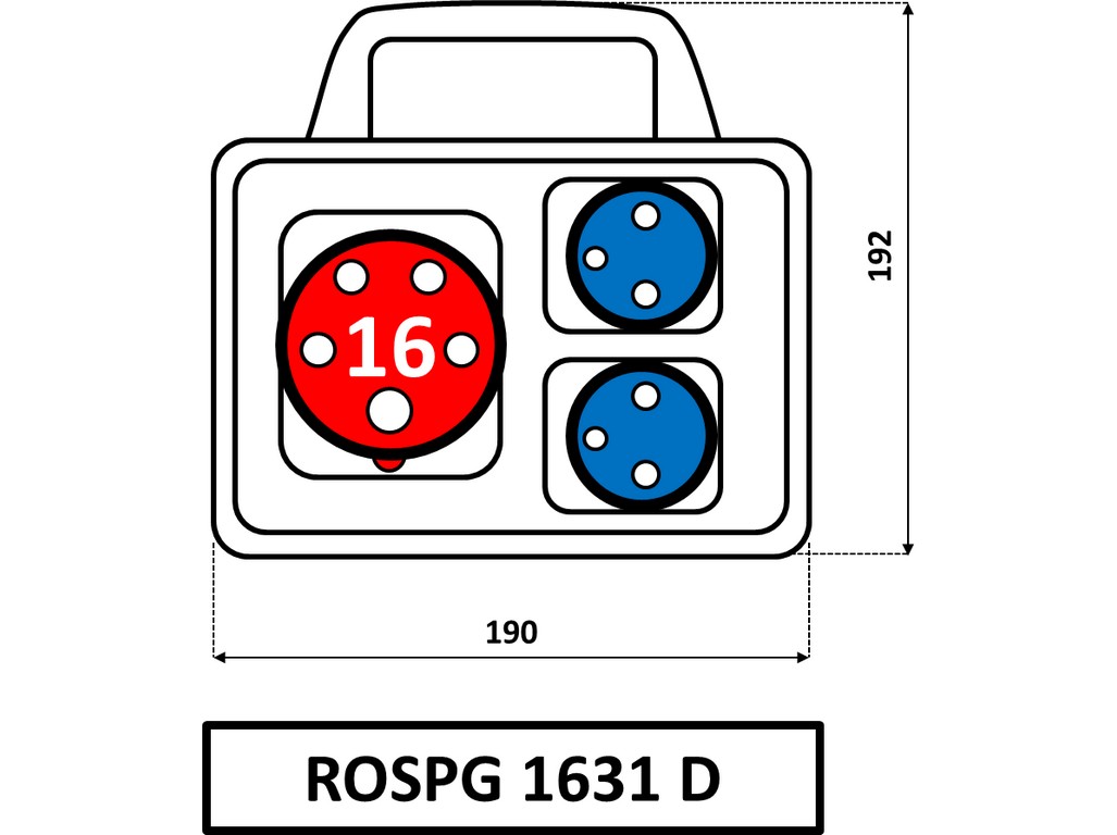 Skříň ROSP1631D 1x16A 5pól, 2x230V IP54 s držadlem Praktik SEZ
