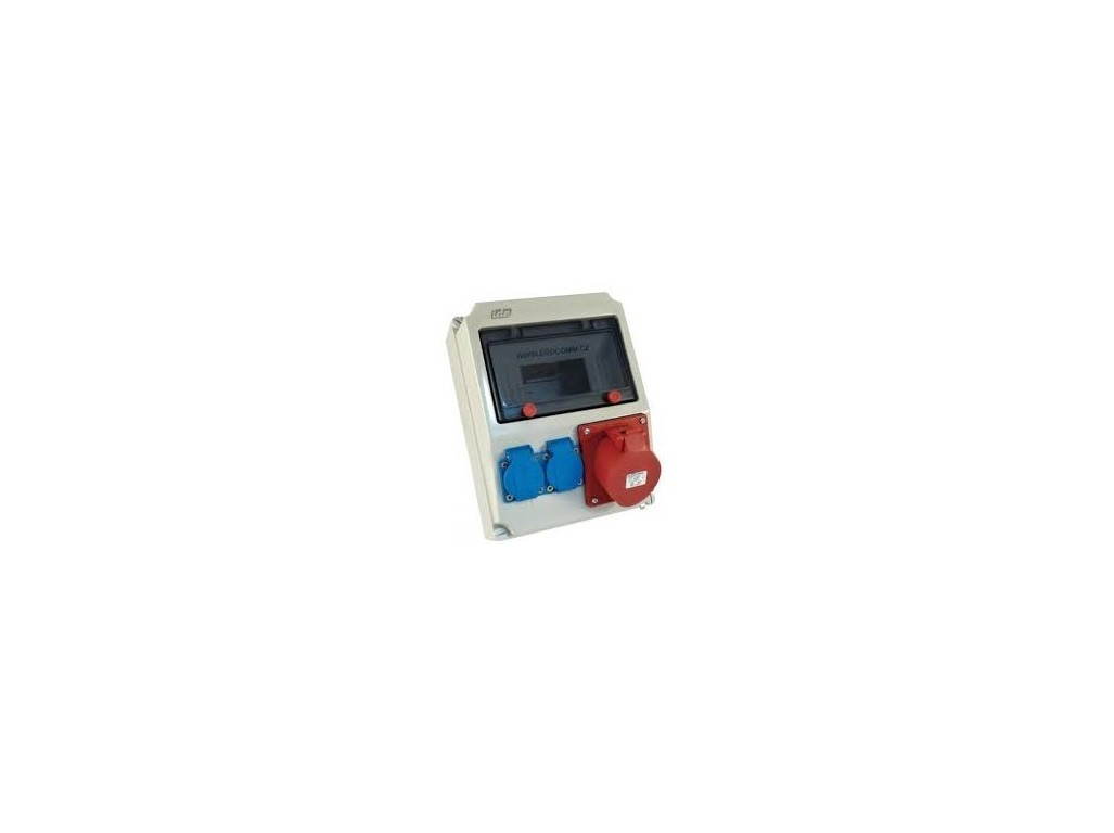Skříně pro instalaci zásuvek (2x zásuvka 230V/16A ;1x zásuvka 400V /32A /5 pol. ;1x svorkovnice PE+N ; 2x vývodka ISO25) a modulových přístrojů jsou vyrobeny z UV stabilních plastů.Uvnitř je DIN lišta pro max.9 modulů.Kryti dle použitých zásuvek až 67.