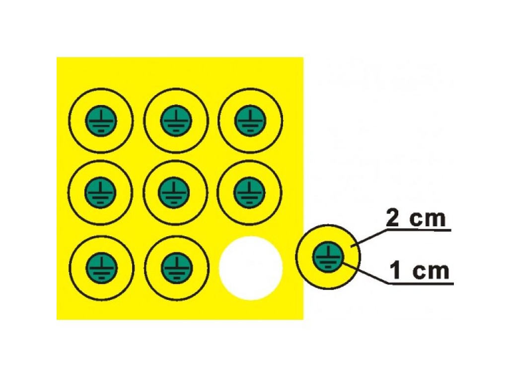 Štítek DT012a uzemnění v kruhu 1cm (aršík 90ks)
