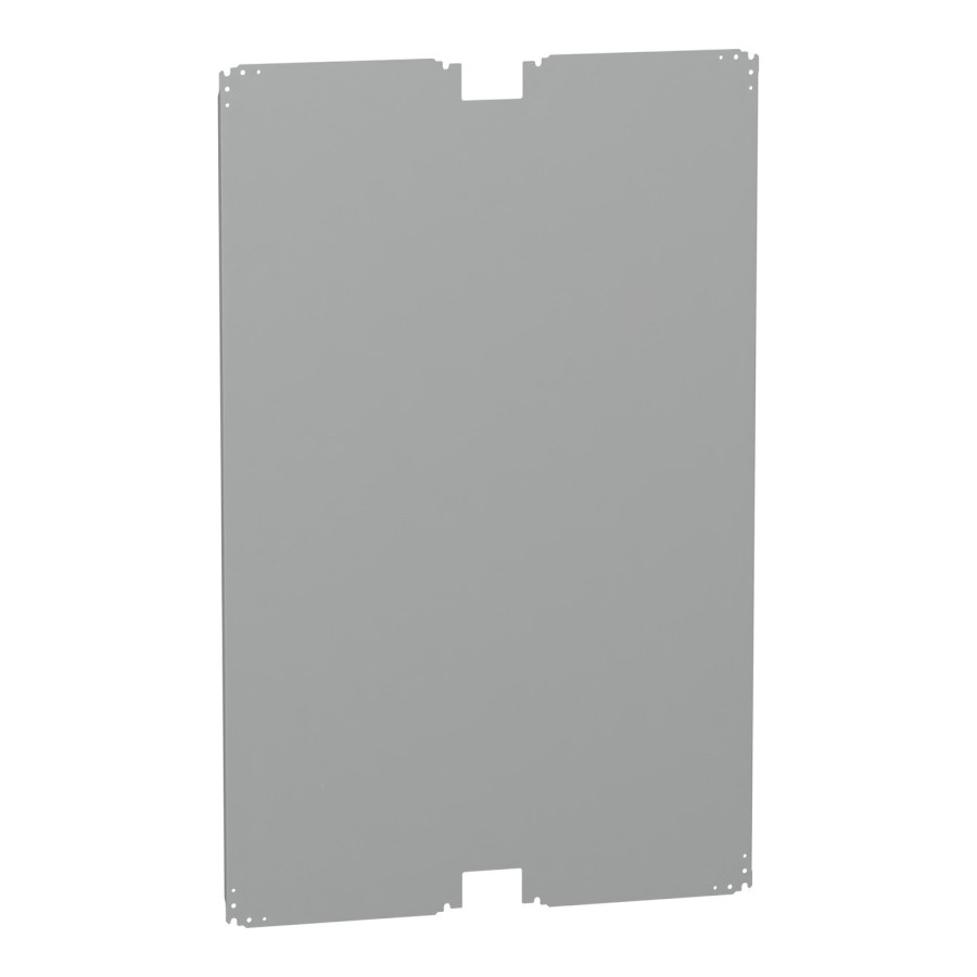 Thalassa PLA metallic mounting plate. For enclosure H is1500 x W is1000 mm. Step slides mounting location or on back inserts location (fixing by screw type M8). Plain mounting plate. 150 Kg permanent permissible load. Galvanised Steel. Grey RAL 7035.
