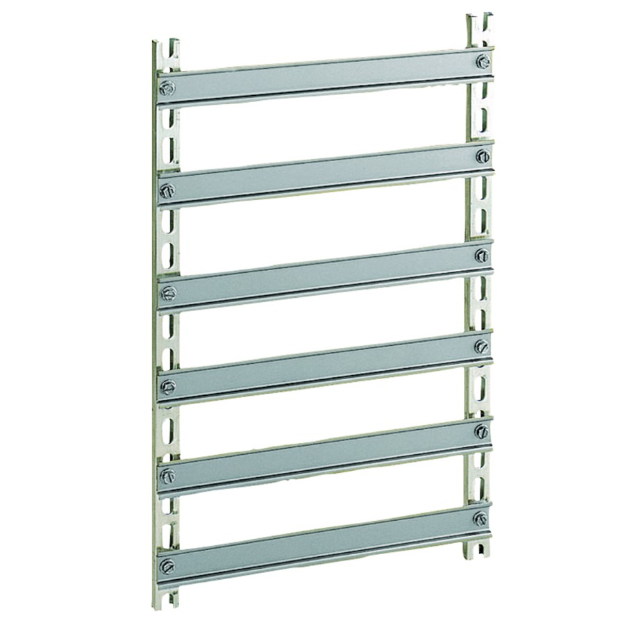 Symmetrical mounting chassis for enclosures (S3D, S3X, PLM, CRN). (6 rails) 1000 x 800 mm. Vertical aluminium rails and 6 cross rails (symmetrical DIN). 2 uprights. Steel for rail, aluminum for uprights.