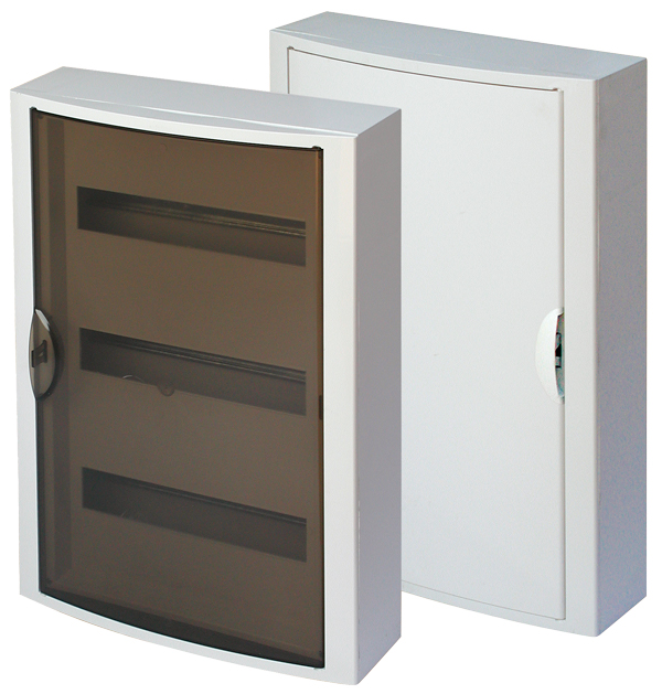pro nástěnnou montáž, průhledné dveře, počet řad 3, počet modulů v řadě 14, krytí IP40, PE+N, barva bílá, materiál : plast