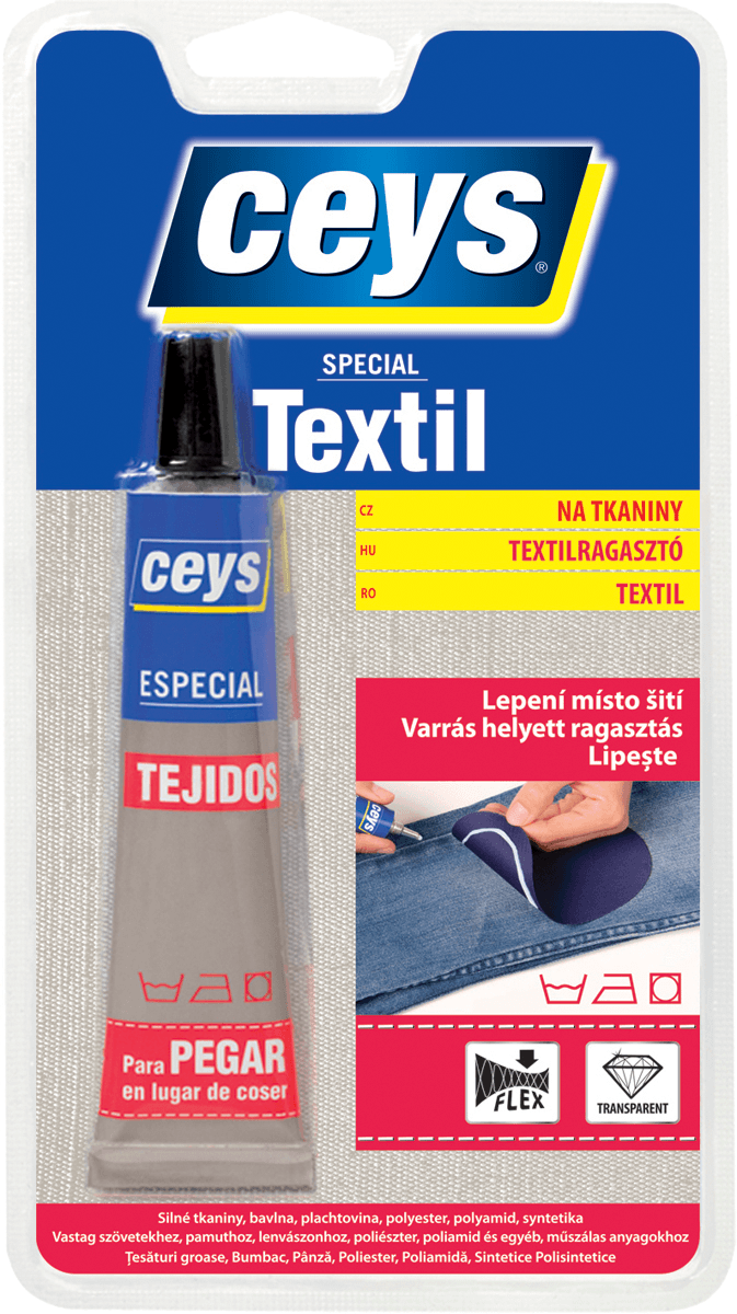 Lepí všechny druhy syntetických a přírodních tkanin mezi sebou nebo s jinými materiály (dřevo, kůže, karton, sádra, kov, keramika, sklo atd). Je odolný praní a žehlení. Zaručuje trvalá, čistá a pružná spojení. Po zaschnutí je průhledný. Nedoporučuje se na jemné tkaniny.