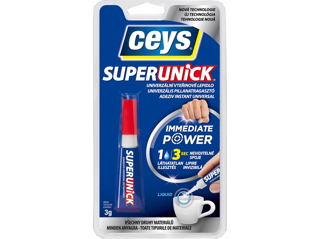 Vteřinové lepidlo poslední generace pro dokonalé a trvalé spoje. Nové balení: bezpečnější - bezpečnostní uzávěr s dětskou bezpečnostní pojistkou certifikovaný normou UNE-EN ISO 8317. Kontrola dávkování kapka po kapce. Odolné zátěži do 260 kg/cm2, vlhkosti a klimatickým změnám (-40°C až +95°C) i mytí v myčce, ranám a vibracím.