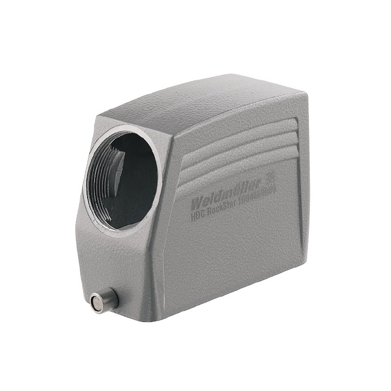 Kryt pro průmyslové konektory, Kabelový vstup ze strany, Pouzdro zástrčky, Koncová uzamykací svorka, dolní strana, Velikost: 6, IP65, v zapojeném stav