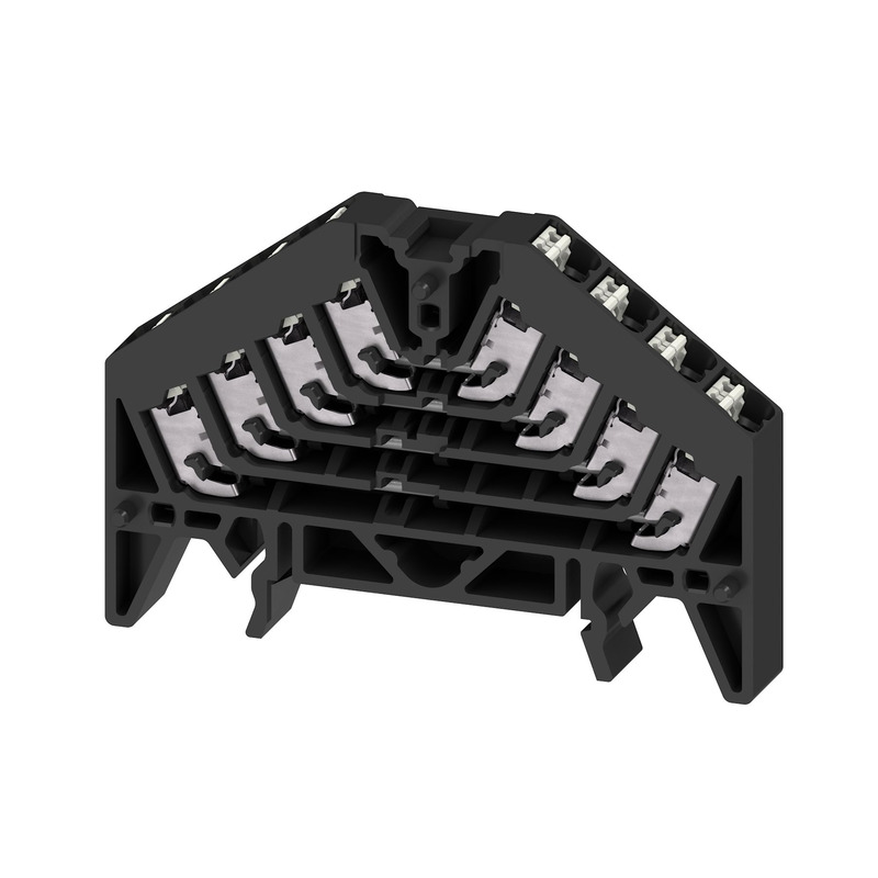 Propojovací svorka k rozvádění napájení, PUSH IN, černá, 1.5 mm², 10 A, 250 V, Počet připojení: 16, Počet úrovní: 4, TS 35 x 7,5, V-0, Polykarbonát
