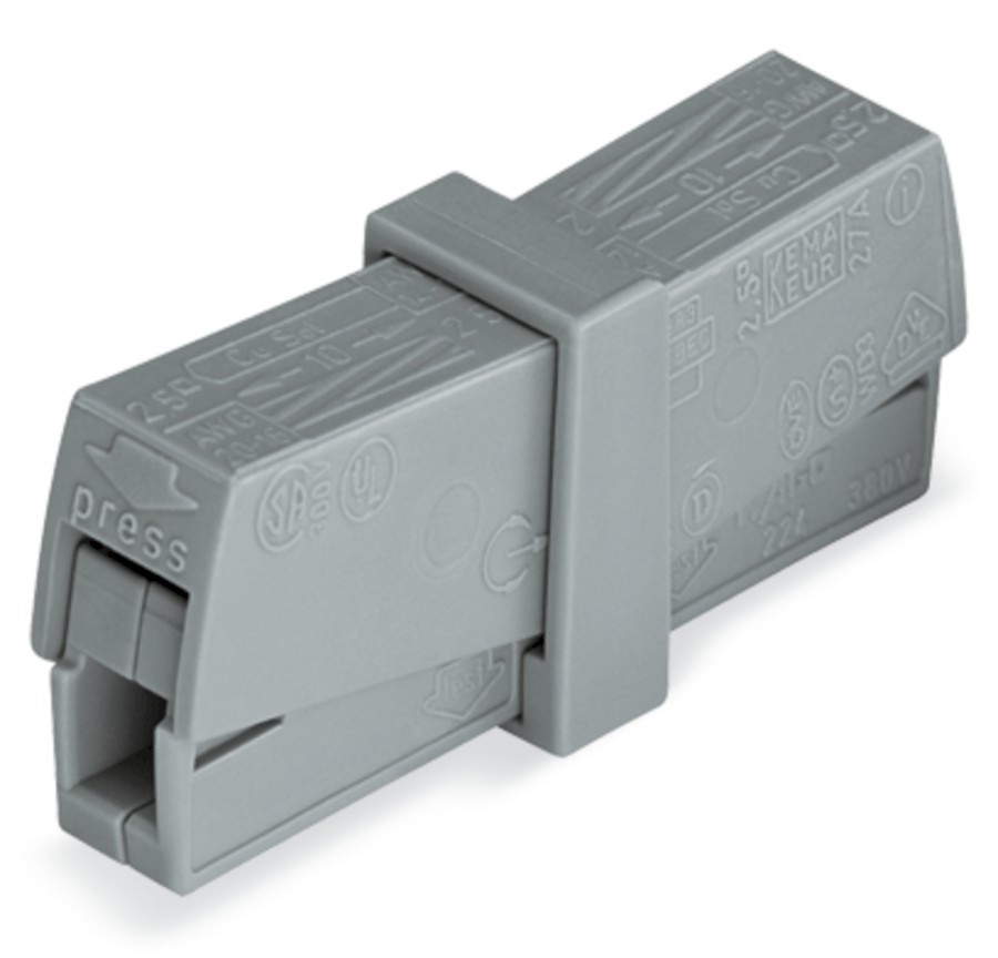 Servisní svorka;Tlačítko na obou stranách;Strana svítidla: pro vš. druhy vodičů;Šedá
