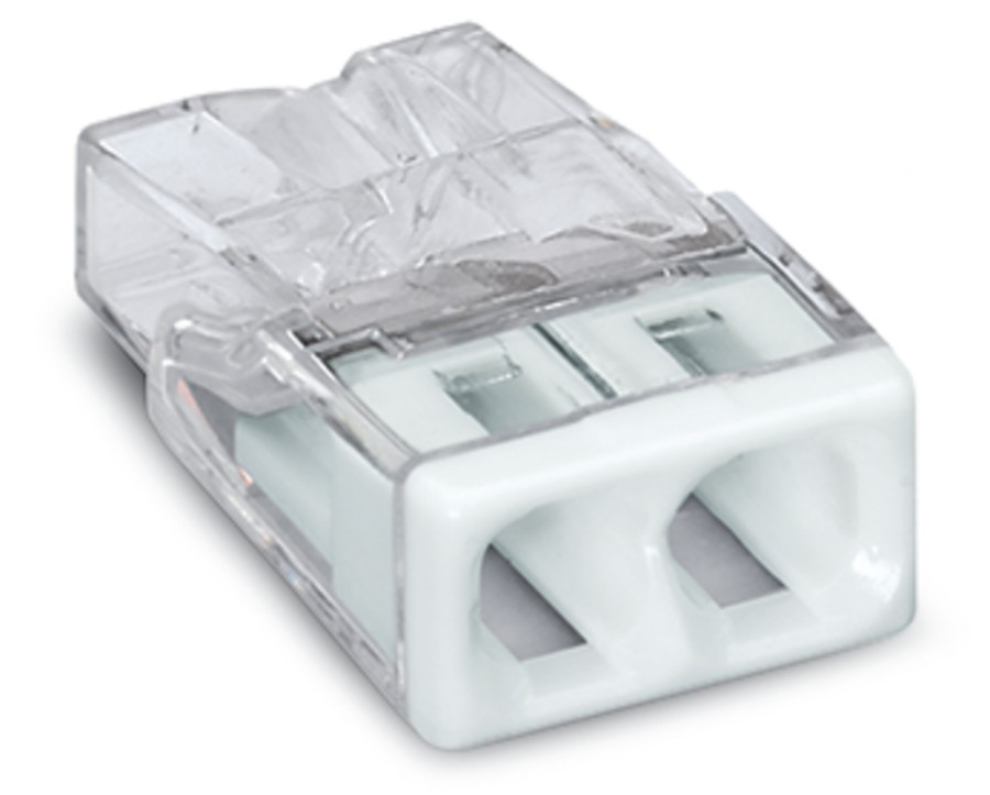 Instalační svorka PUSH WIRE®; Pro plné vodiče; Max. 2,5 mm²; 2 vodiče; Barva pouzdra transparentní; Barva krytu bílá; Okolní teplota: max. 60 °C (T60); 2,50 mm²; Transparentní