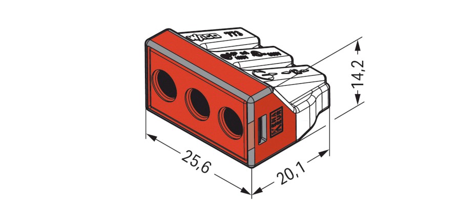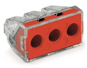 Spojovací krabicová svorka; PRO PLNÉ A VÍCEDRÁTOVÉ VODIČE; Max. 6 mm²; 3vodič.; Barva pouzdra transparentní; Barva krytu červená; Max. teplota okolního prostředí 60 °C; 6,00 mm²; Transparentní