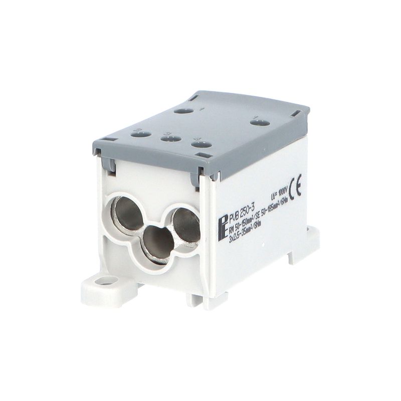 Blok pro rozdělení fází PVB 250-3, 1pól., AL/CU, 250A, 690V, šedý, na DIN