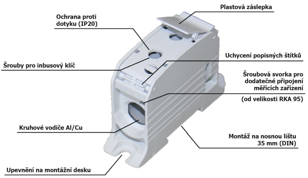 • dodatečná připojovací svorka do 10 mm2 (např. pro měření, indikaci stavu, od velikosti RKA 95 včetně)