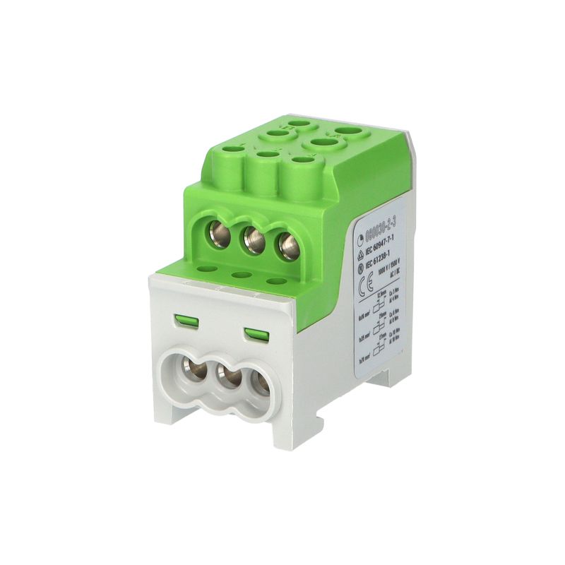 Blok pro rozdělení fází UVB 200 PE, 1pól., 200A, AL/CU, 1000V, zelený, na DIN