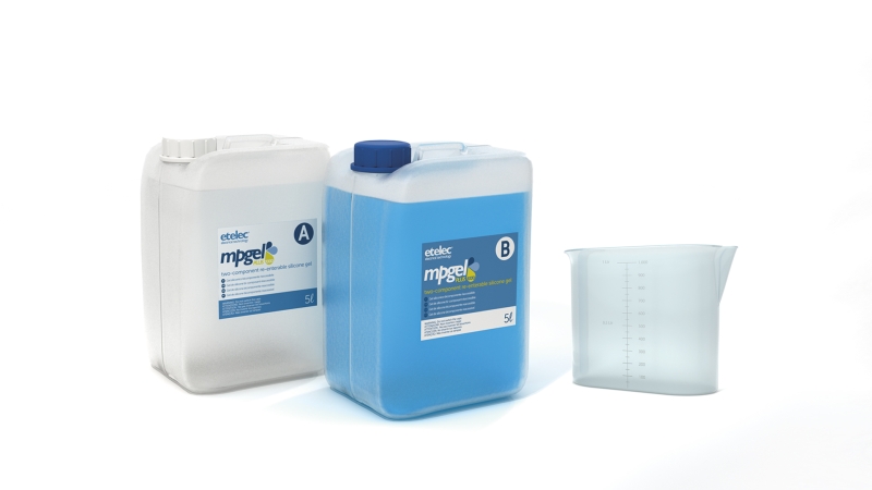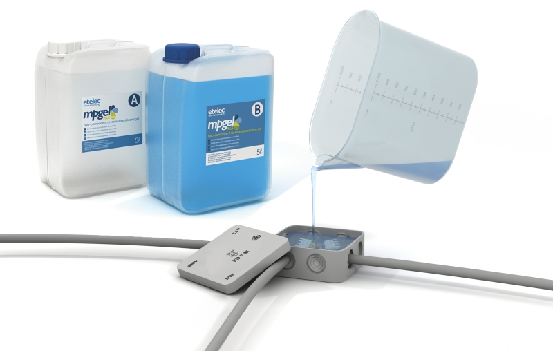 Dvousložkový zalévací gel - ETELEC MPGEL. Pro výplň a izolaci elektrických spojů. Rychle a jednoduše chrání spoj před nepříznivými přírodními vlivy jako je vlhkost, prach a další nečistoty. Složka gelu "A" i složka gelu "B" je průhledná hmota s nízkou viskozitou ("dobře teče") a po smíchání a vytuhnutí zůstává po celou dobu životnosti spoje rosolovitá. Při samotném vylévání krabičky nebo jiného média krásně zatéká do všech zákoutí. Spoj lze po vytuhnutí jednoduše rozebrat. Gel je šetrný k životnímu prostředí. Navíc nemá žadnou expiraci - můžete jej uchovávat/skladovat mít jej k použití kdykoliv bude potřeba.